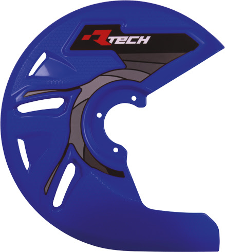 Protection universelle de disque en polypropylène bleu R’Tech, compatible avec configurations YZF et freins à disques apparents. Idéale pour off‑road, protège contre projections et chocs, montage facile.