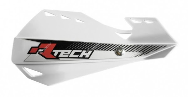 Protège-mains tout-terrain en polypropylène injecté, finition blanche résistante aux UV et aux rayures ; kit 6 pièces avec couvercle de boîte à air, montage simple sur fixations d’origine.