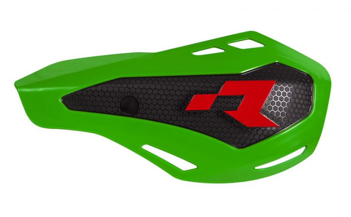 Protège-mains HP1 en polypropylène injecté avec kit embrayage hydraulique, compatible Honda CRF et Kawasaki KX, protection renforcée des commandes et finition brillante résistante aux UV.