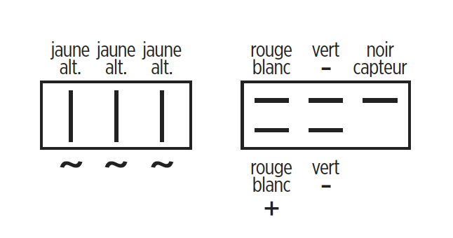 Tension 12V ; système triphasé — courant continu (C.C.) ; 8 câbles avec capteur AC.