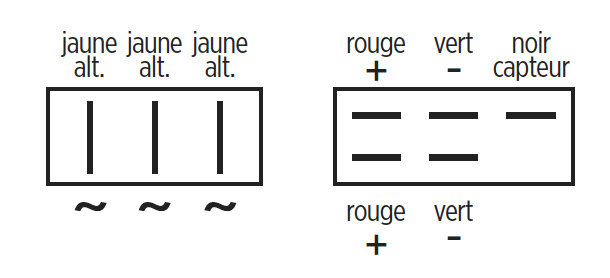 12 Volts, triphasé – Courant Continu (C.C.).