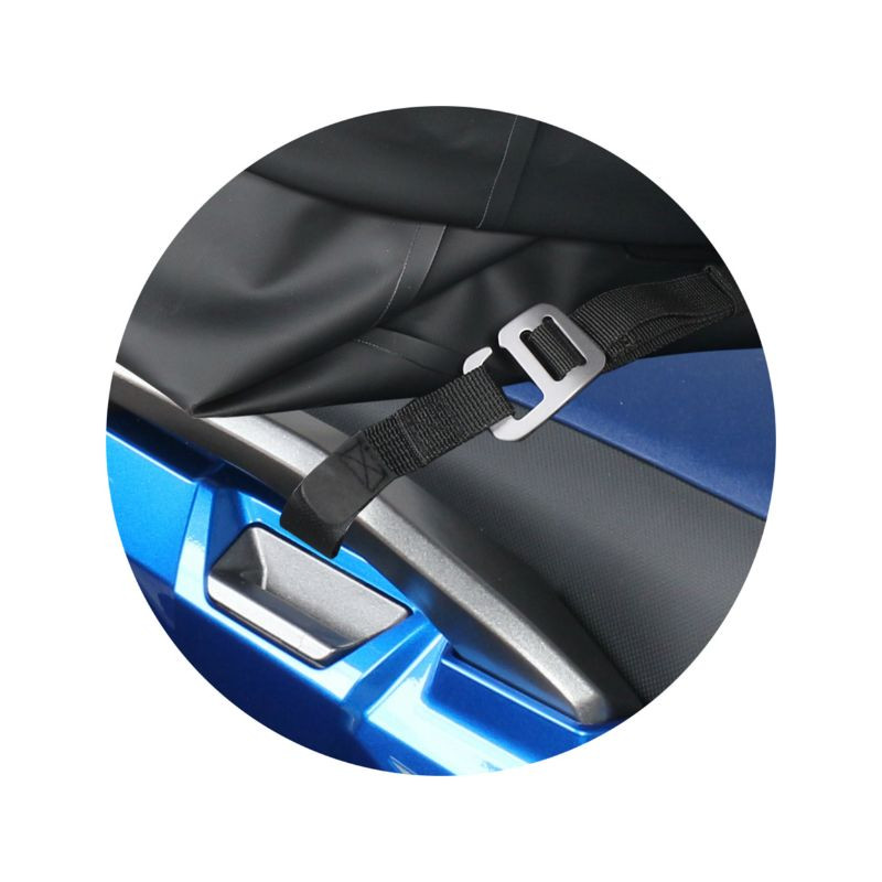 Sa construction en PVC et bâche triple couche avec des coutures soudées haute fréquence assure une étanchéité complète, même sous une pluie battante.