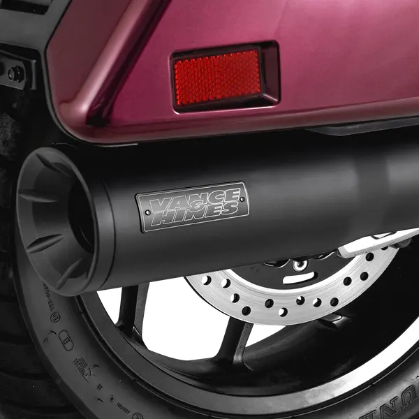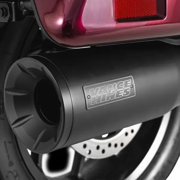 Revêtu d’une finition céramique noir mat, ce silencieux apporte une touche de sobriété agressive à votre moto. Son design compact à diamètre de 4,5 pouces (11,5 cm) lui permet de s’intégrer harmonieusement au profil de la Rebel, tout en mettant en valeur son caractère musclé. L’extrémité de type embout usiné CNC en aluminium ajoute une note premium, tandis que le badge latéral gravé au laser signe fièrement l’identité Vance & Hines.