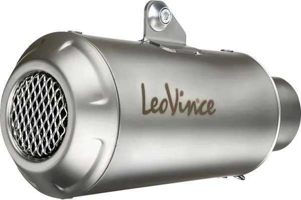 Le LeoVince LV-10 se distingue par un embout sablé et une finition mate aspect titane, conférant à votre moto une allure sportive et agressive. L’ensemble est complété par une grille arrière en acier inoxydable robuste et un logo LeoVince gravé au laser pour une signature visuelle unique. Le support de fixation est également découpé au laser, garantissant précision et durabilité.