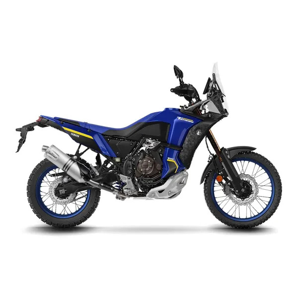 Silencieux slip-on LeoVince LV One Evo pour Yamaha Tenere 700 (2019–2025), inox aspect titane avec embout carbone ou inox, homologué ECE, léger (3,31 kg) et montage sans modification.