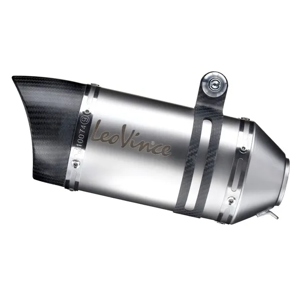 Silencieux slip‑on LeoVince LV PRO en inox avec embout carbone, homologué ECE, pour Kawasaki Z900 (version Z900F 2020–2022) — allège la moto et améliore l’esthétique sans modifier la conformité.