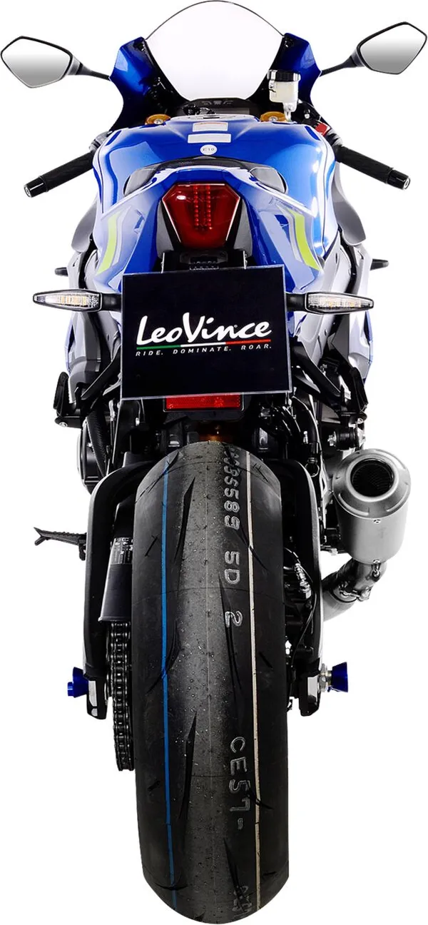 Silencieux slip-on LeoVince LV-10 en inox AISI 304 pour Suzuki GSX-R 1000 (2017–2020), finition titane mate, allège la moto et améliore son son pour un usage performance non homologué route.