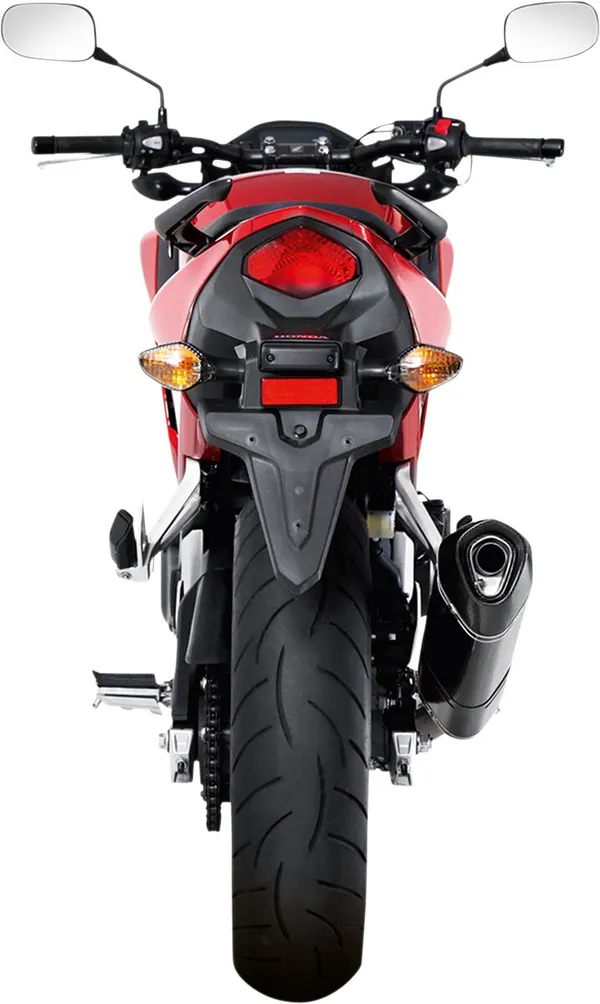 Silencieux Slip-On Akrapovic en fibre de carbone, montage direct sur échappement d’origine pour Honda CB/CBR 400 et 500 (2013‑2016). Améliore réactivité moteur et sonorité tout en restant homologué ECE.