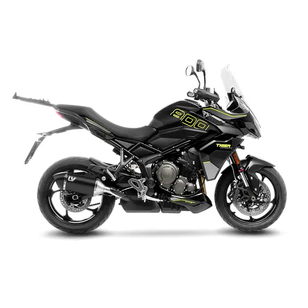 Le LV-14 Black Edition arbore une finition noire mate et des lignes tri-ovales modernes qui rehausseront instantanément l’allure de votre moto. L’embout conique en fibre de carbone n’est pas seulement esthétique : il limite le poids, tout en assurant une excellente résistance à la chaleur. Le résultat ? Un look raffiné et sportif, qui s’intègre parfaitement au design de la Tiger Sport 800.