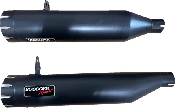 Silencieux Slip-On Bassani Fluted 4″ noir pour Indian Chief & Super Chief (2022+) compatible moteurs Thunderstroke 111/116, livré par paire avec kit de fixation et chicanes amovibles pour moduler la sonorité.