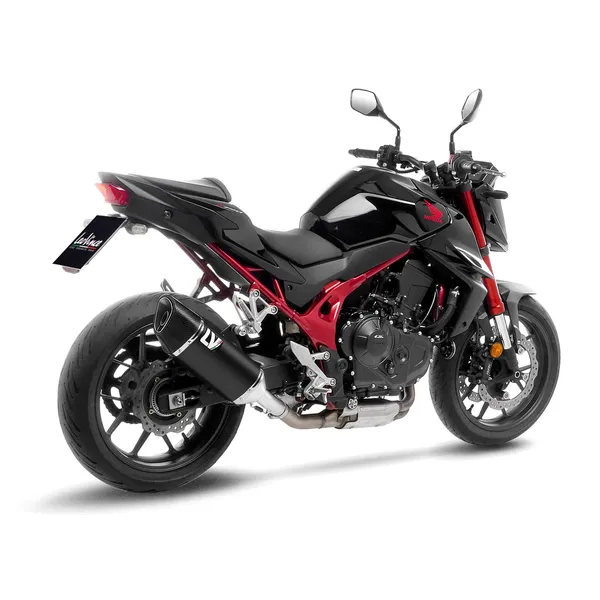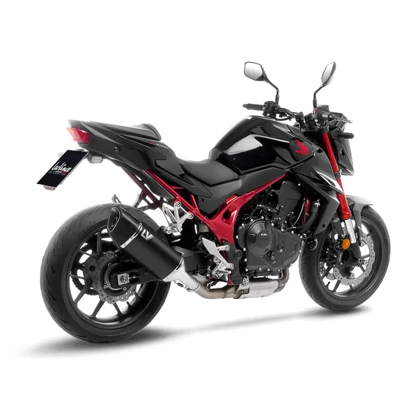 Le LV-14 R Black Edition affiche une silhouette dynamique qui s’intègre parfaitement aux lignes modernes de la CB750 Hornet. Son corps en acier inoxydable noir garantit une excellente durabilité face aux conditions routières. L’embout en fibre de carbone ajoute une touche racing et assure une meilleure résistance à la chaleur.