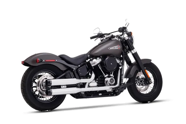 Silencieux Slip-On Dual 3,5″ Rinehart Racing pour Harley‑Davidson Softail (2018+) en acier chromé avec embouts noirs, facilite le montage d’origine et améliore son et couple moteur.