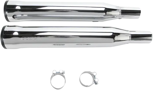 Silencieux Slip-On Cobra Race Pro Tip en chrome, vendu par paire, pour Harley‑Davidson Sportster 2004–2013 ; améliore la sonorité et le flux des gaz sans modifications complexes.