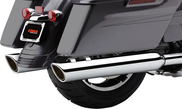 Silencieux Slip-On COBRA 909 en chrome, embout scalloped, pour Harley‑Davidson Touring 1995–2016. Améliore la sonorité et la réponse moteur tout en conservant un montage direct par paire.