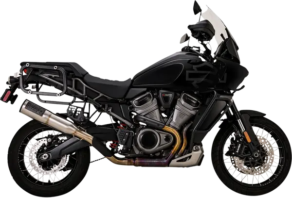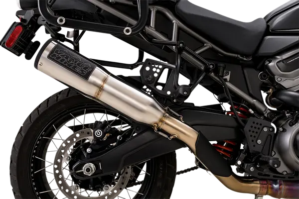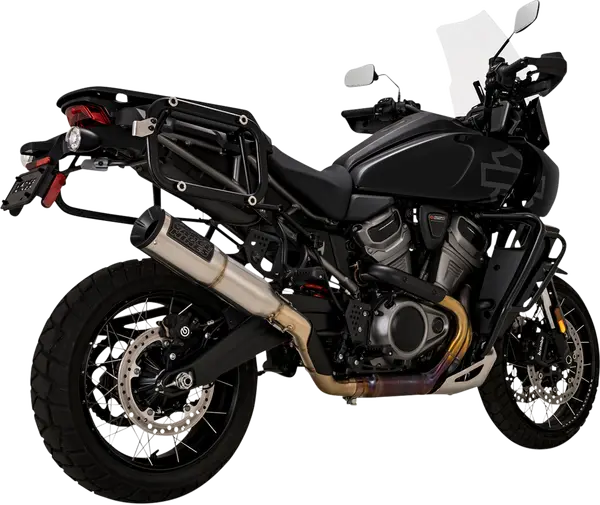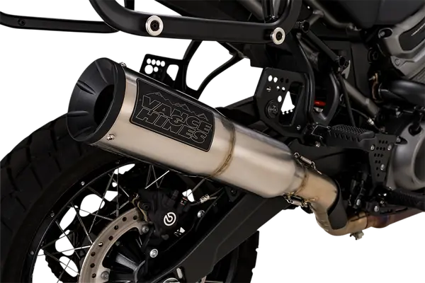 Silencieux slip-on en acier inox 304 pour Harley‑Davidson Pan America (Revolution Max 1250) offrant gain de performance (+5 HP/+5 lb‑ft) et sonorité profonde, montage avec kit et joint collecteur inclus.
