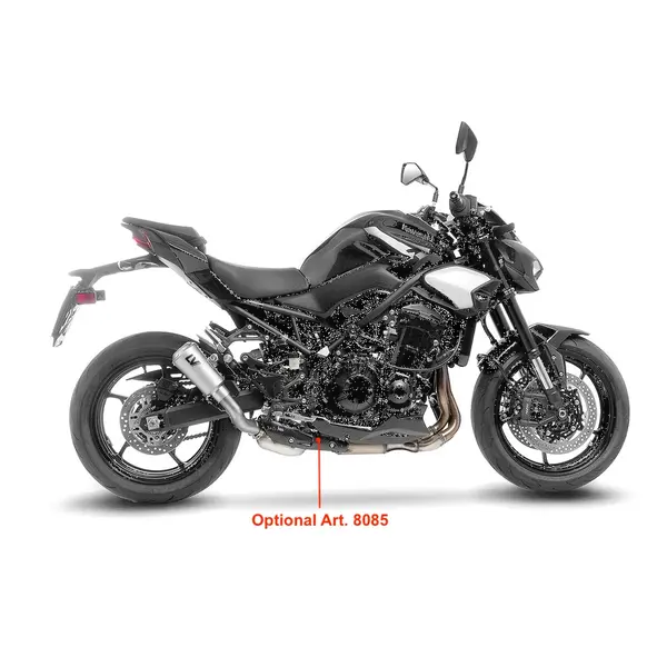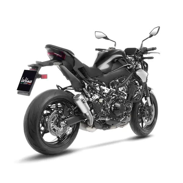 Silencieux slip-on en acier inox AISI 304, homologué ECE EURO 5+, compatible Kawasaki Z900 ABS (à partir de 2025) — réduction de poids et finition microbillée pour un look racing.