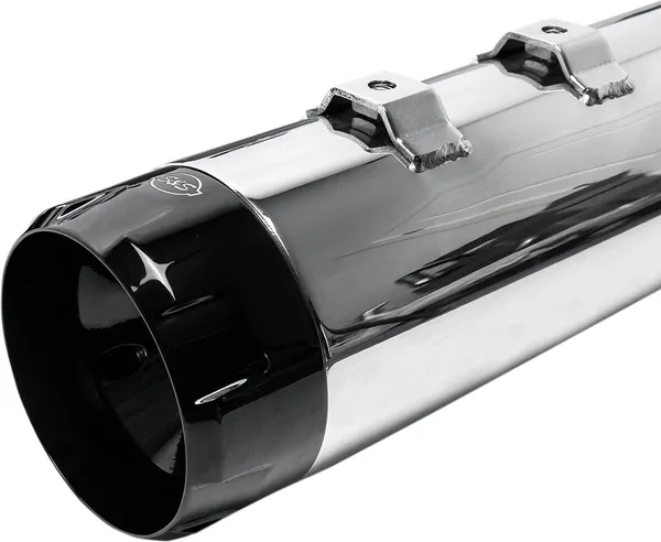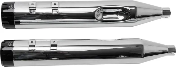 Silencieux Slip-On MK45 S&S Cycle avec embouts Thruster, chromés, vendus par paire pour Harley‑Davidson Touring (1995–2016) ; améliore sonorité et couple moteur tout en offrant des dB killers amovibles.