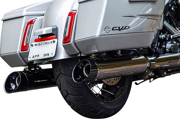 Le revêtement Lava Chrome offre un rendu saisissant, avec une finition miroir subtilement teintée fumée. Ce contraste unique crée un effet visuel à la fois agressif et raffiné qui complète parfaitement les lignes emblématiques des modèles Harley-Davidson Touring récents. L’embout noir en slash-cut accentue encore davantage cette esthétique audacieuse.
