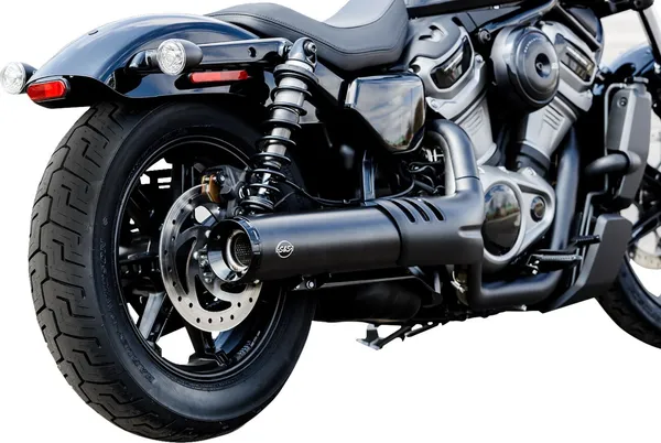 Silencieux Slip-On Grand National S&S Cycle en acier inox noir mat, homologué ECE Euro 5, pour Harley-Davidson Nightster RH975 (2022–2026) — son plus profond et montage direct sur collecteur d’origine.