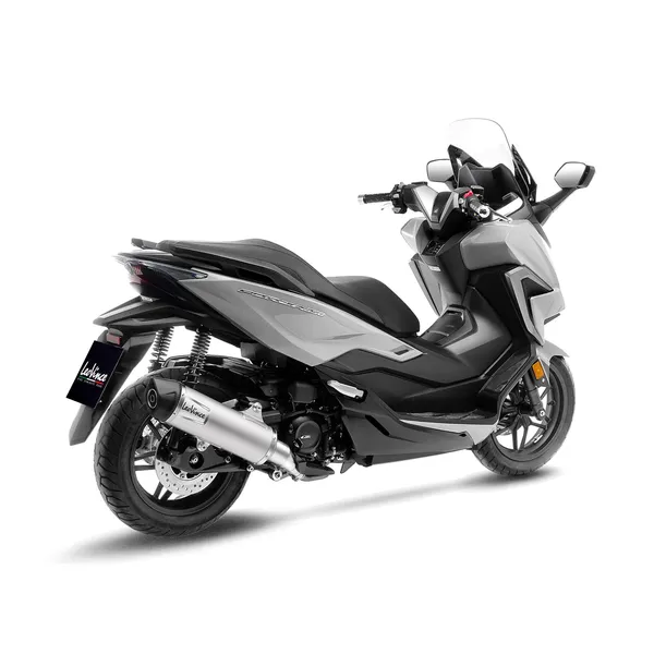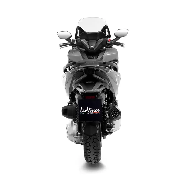 Silencieux slip‑on LeoVince LV One Evo en acier inox AISI 304 avec embout carbone, homologué ECE, pour Honda Forza 350 (2021‑2024 Europe) — léger et facile à installer.