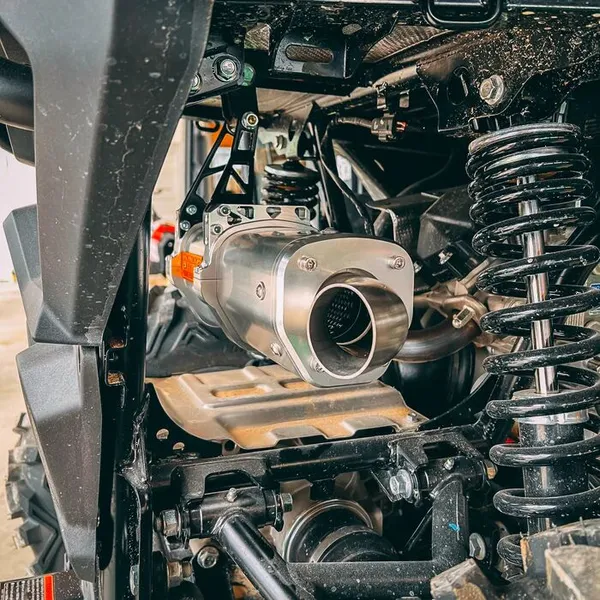 Silencieux Slip-On en aluminium anodisé 6061 avec embout inox, kit complet prêt à monter pour CF MOTO ZFORCE 800 V2 EFI 4×4 EPS (2023–2024), améliore sonorité et durabilité.