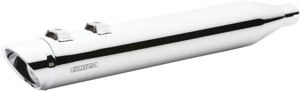 Silencieux Slip-On Cobra en chrome, embouts Slash Cut aluminium, corps CV 2,5″ avec fibre de verre, vendus par paire pour Harley Trike Tri Glide Ultra et Street Glide Trike 2009–2025, son grave et gain de poids.