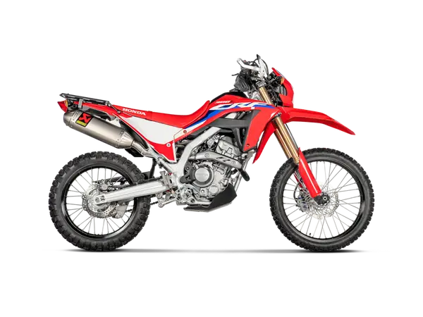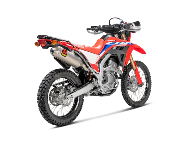 Silencieux Slip-On en titane Akrapovic pour Honda CRF300L Rally (2021–2025), montage côté droit, 2,73 kg — performance allégée et sonorité race, usage réservé circuit fermé.