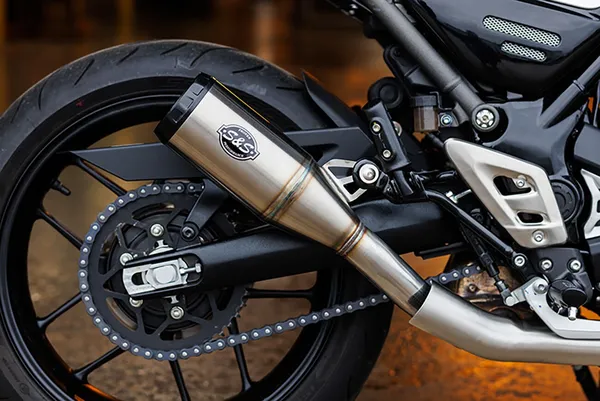 “Ce silencieux transforme littéralement la Scrambler 400 ou Speed 400 en lui apportant une sonorité beaucoup plus agréable et une belle finition racing. Chez Moto Slider, on apprécie tout particulièrement le look de l’embout noir Grand National, ainsi que la qualité de fabrication. Un excellent choix pour ceux qui veulent se démarquer tout en restant dans la légalité.”