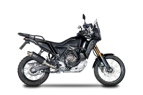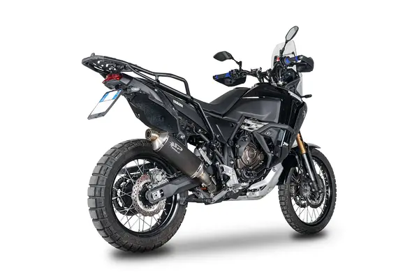 Fidèle à l’esprit rallye dont il s’inspire, le modèle Dakar se distingue par son design audacieux et son architecture hexagonale moderne. Il s’intègre parfaitement à la ligne de la Ténéré 700, en apportant une touche plus agressive sans nuire à l’ergonomie ou à la garde au sol. Son embout en finition inox brossé contraste élégamment avec le corps mat, soulignant un design pensé pour résister aux environnements extrêmes tout en étant esthétiquement irréprochable.