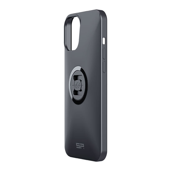 Coque rigide 3 couches avec fixation intégrée pour iPhone 12 Pro Max, compatible supports SP‑CONNECT, offrant protection anti‑choc et accès complet aux boutons et ports pour une utilisation moto sécurisée.
