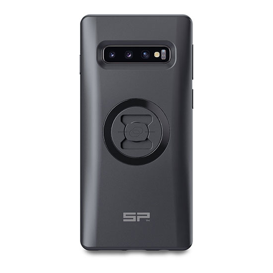 Coque SP‑CONNECT sur‑mesure pour Samsung Galaxy S10, structure 3 couches pour absorption des chocs et mécanisme à baïonnette intégré permettant une fixation rapide et sûre sur supports moto.