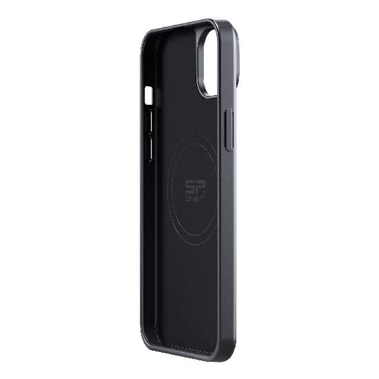 Coque SPC+ pour iPhone 14 Plus, structure anti‑choc flexible compatible MagSafe et fixation SP‑CONNECT incluse, maintien sécurisé avec verrouillage mécanique 90° pour usage moto, vélo ou quotidien.