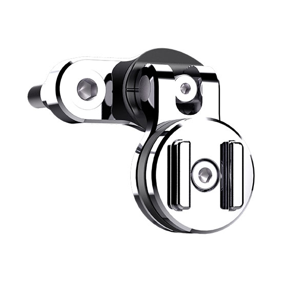 Support chromé en aluminium usiné pour levier d’embrayage ou de frein, orientable sur 3 axes avec amortisseur intégré. Fournis avec vis M6 et UNC 1/4”-20 pour fixation stable et polyvalente.