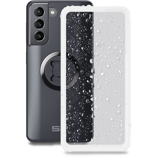 Housse étanche pour coques SP‑CONNECT S21, protège smartphone contre pluie, boue et poussière tout en conservant la fonctionnalité tactile ; montage et retrait rapides sans outils.