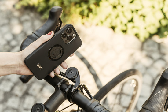Support smartphone pour guidon vélo SP‑CONNECT, fixation mécanique 90° compatible coques SP‑CONNECT. Conçu pour maintenir solidement votre mobile en usage vélo, possibilité d’adapter sur scooter/moto avec supports complémentaires.