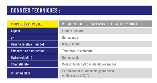 Optez pour le WD-40 SPECIALIST Dégraissant pour un nettoyage efficace et rapide, adapté à de multiples applications.