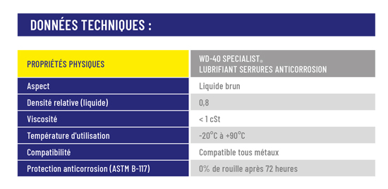 Utilisez le WD-40 SPECIALIST Lubrifiant Serrures pour un entretien optimal de vos serrures, garantissant leur bon fonctionnement et une protection contre la corrosion.