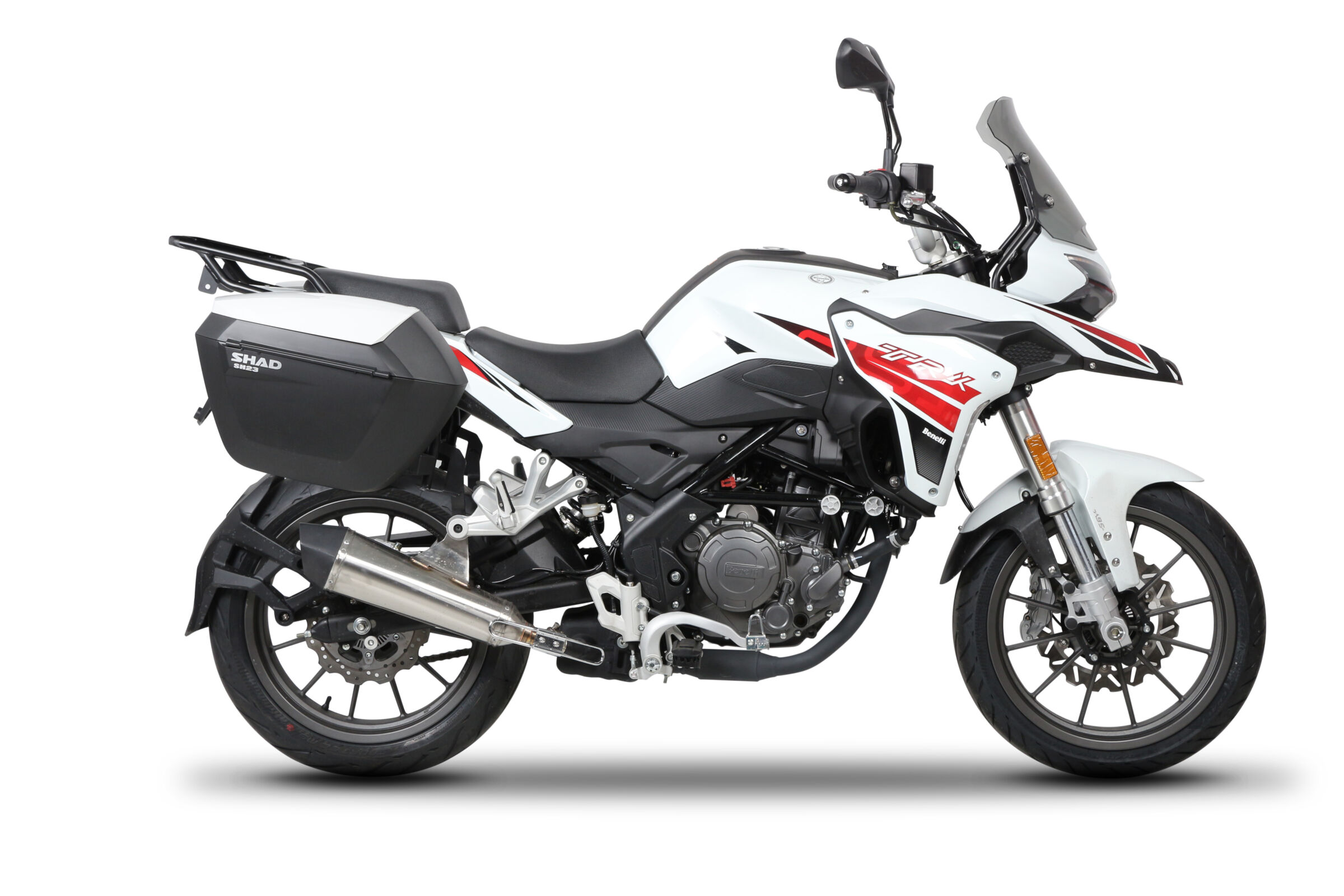 Le système de fixation latérale 3P System de SHAD est conçu pour les valises SHAD sur les Benelli TRK 125 et TRK 251 (2019 et modèles plus récents).