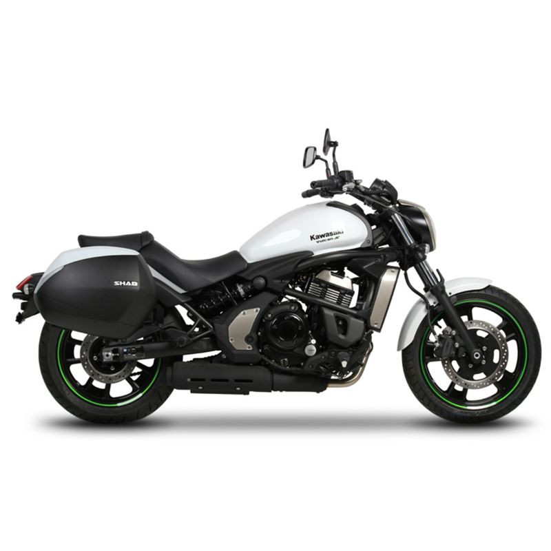 Le système de fixation latérale 3P System de SHAD pour valises, conçu pour les Kawasaki Vulcan S 650 (2015 et modèles ultérieurs), offre une solution élégante et sécuritaire.