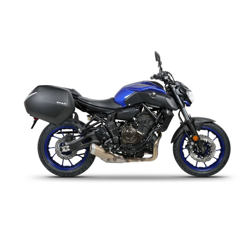 Le système de support 3P System Y0MT78IF de SHAD est conçu pour les valises latérales sur les Yamaha MT-07 de 2014 à 2023.