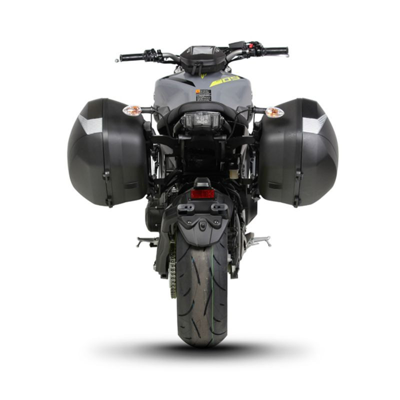 Support latéral 3P System Y0MT97IF pour valises SHAD sur Yamaha MT-09 (2013-2020)Ce support latéral 3P System, une innovation majeure de SHAD, offre un design intégré, une sécurité accrue et une ergonomie optimisée pour votre Yamaha MT-09.Points forts :* Design intégré : Le système 3P, avec son bras unique, s’intègre parfaitement à la ligne de la moto, réduisant l’encombrement visuel.* Position optimale : La conception du 3P System déplace le poids des valises vers le centre de gravité de la moto, améliorant la stabilité et la sécurité lors de la conduite.* Aérodynamique optimisée : Le système 3P favorise une circulation d’air optimale autour des valises, réduisant les effets de “d’ancrage” et améliorant la stabilité à haute vitesse.* Technologie brevetée : Le 3P System est une technologie exclusive SHAD, offrant une fiabilité et une sécurité inégalées.Informations importantes :* Ce support est vendu par paire.* Non compatible avec les valises latérales SH42 et SH43 (SIDE MASTER).* Le top case, le support de top case et les valises sont vendus séparément.Caractéristiques :* Fixations spécifiques pour toutes les valises latérales SHAD.* Montage facile, démontage rapide.* Réduction du poids pour une sécurité accrue.Conseils :* Veuillez consulter la législation en vigueur pour toute installation.* Les photos sont non contractuelles.