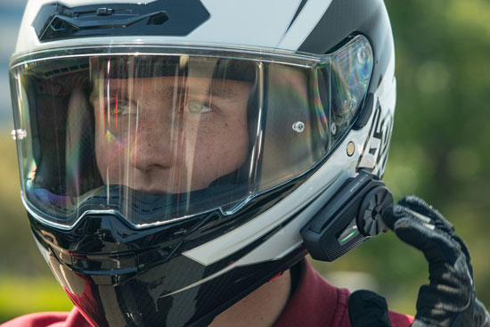 Haut-parleurs Audio HD intégrés et Audio Multitasking™ pour écouter de la musique, recevoir des appels ou suivre un GPS sans interrompre l’intercom.