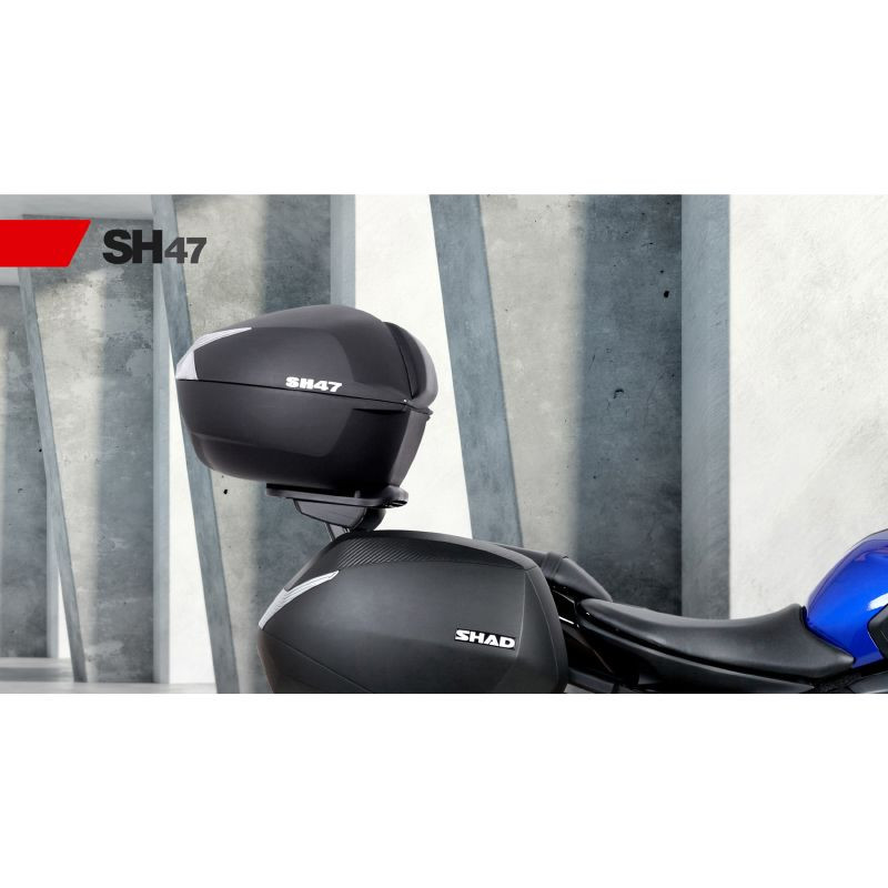 Disponible avec un choix de catadioptres rouges ou blancs et une platine moyenne D1B40PA incluse, le SH47 offre des accessoires en option, comme une sacoche interne, un dosseret et un feu stop à LED.