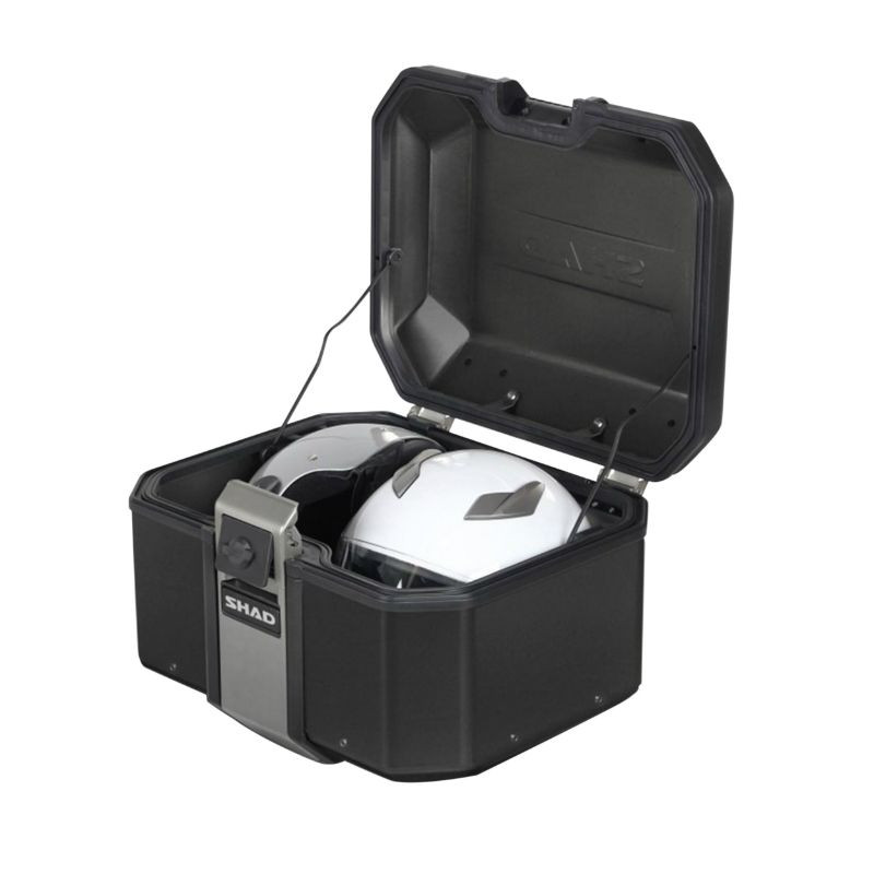 Le top case SHAD TERRA TR55 BLACK EDITION est un top case moto en aluminium noir de 55 litres conçu pour accueillir deux casques modulaires.