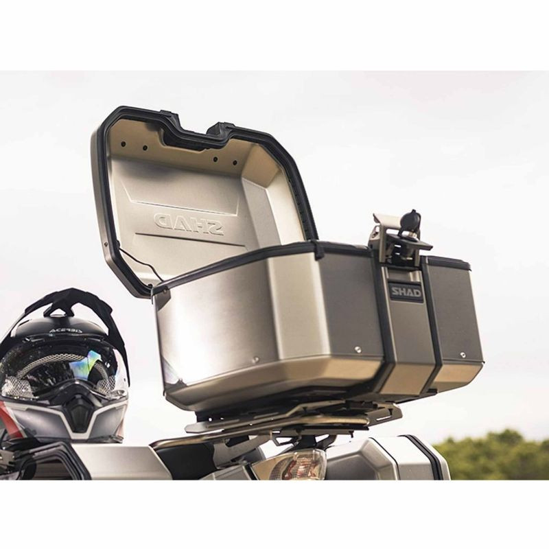 Ce top case en aluminium de 55 litres de SHAD offre un grand espace de rangement pour deux casques modulaires, un design élégant et une durabilité exceptionnelle.
